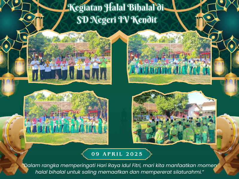 Suasana penuh kehangatan dan kebersamaan menyelimuti halaman SD Negeri IV Kendit pada hari Rabu, 09 April 2025. Seluruh keluarga besar sekolah, mulai dari siswa, guru, hingga staf berkumpul dalam acara Halal Bihalal yang digelar dalam rangka merayakan Hari Raya Idul Fitri 1446 H di halaman SD Negeri IV Kendit