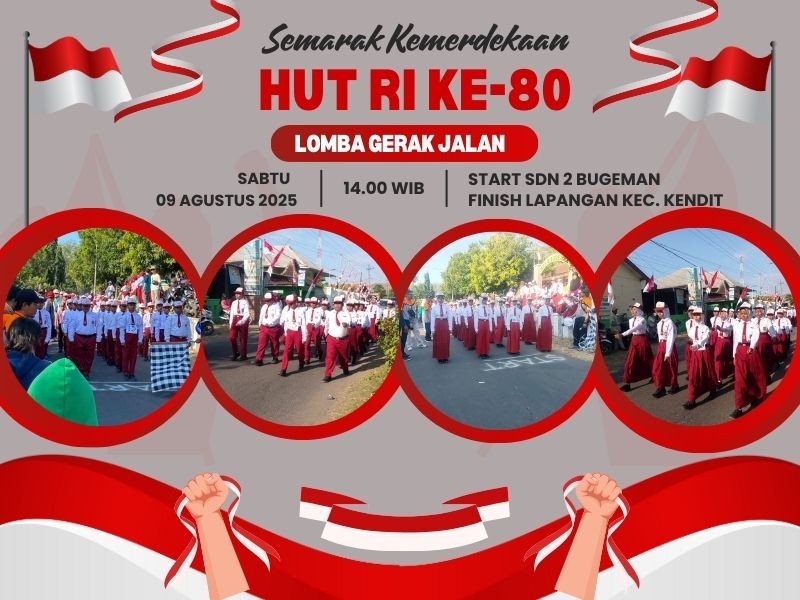 Kendit, 09 Agustus 2025 – Dalam rangka memeriahkan Hari Ulang Tahun ke-80 Kemerdekaan Republik Indonesia, SD Negeri IV Kendit turut ambil bagian dalam kegiatan Lomba Gerak Jalan Tingkat Kecamatan Kendit yang digelar meriah pada Sabtu (09/08).